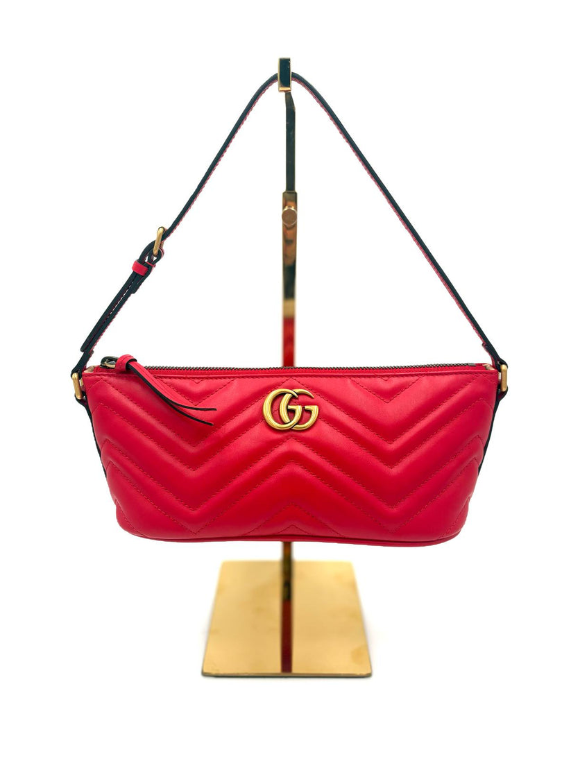 Descrizione: Borsa Gucci GG Marmont in pelle metellasse rossa con dettaglio GG in metallo dorato e comoda tracolla da sotto spalla.