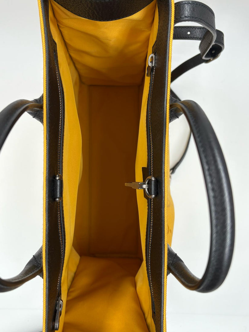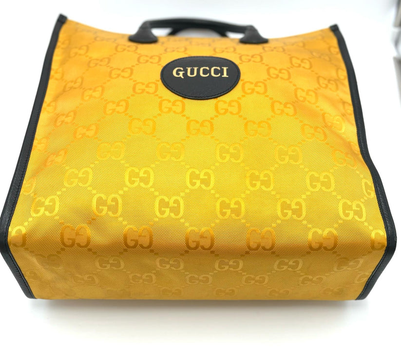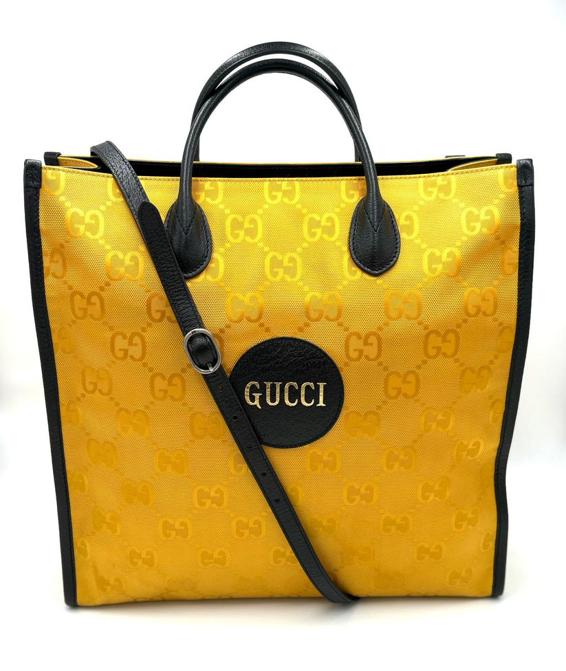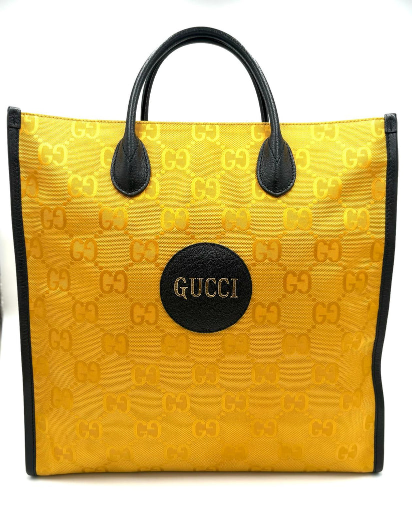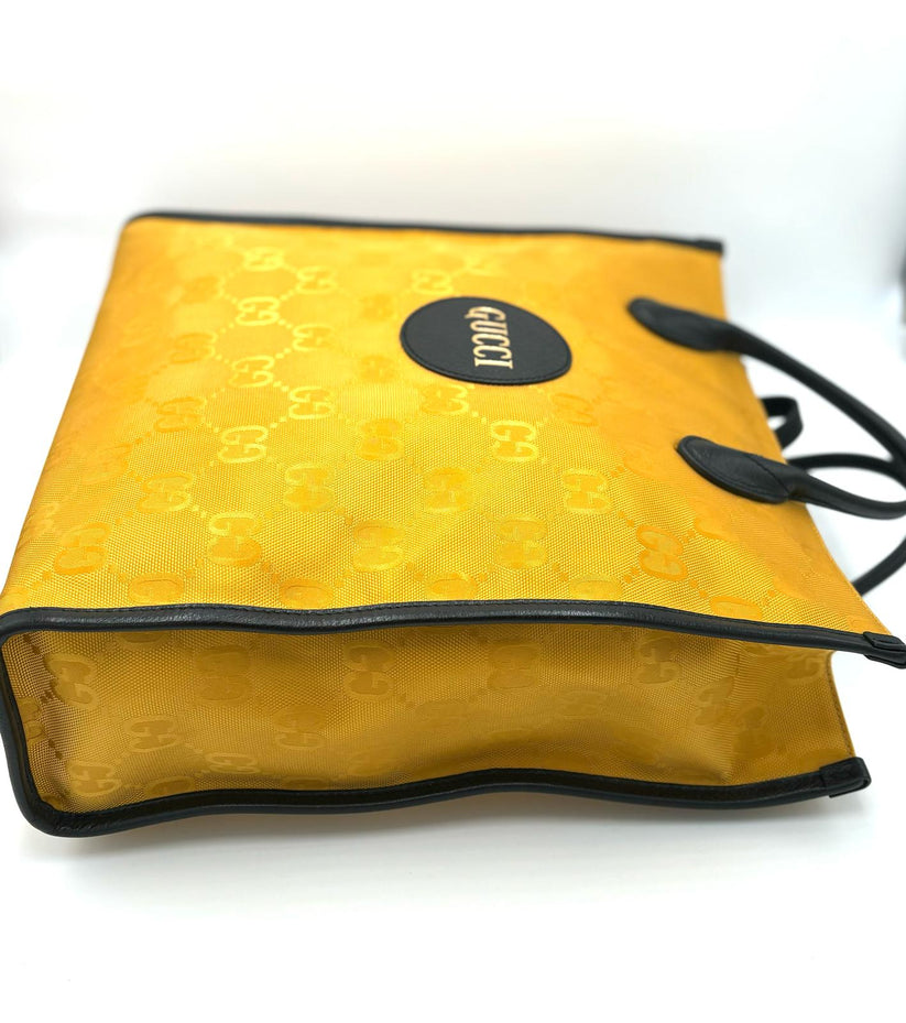 Descrizione: Borsa Gucci Econyl in Nylon color giallo ,pratica shopping con manici in pelle nera e comoda tracolla crossbody in pelle nera, pratica e capiente